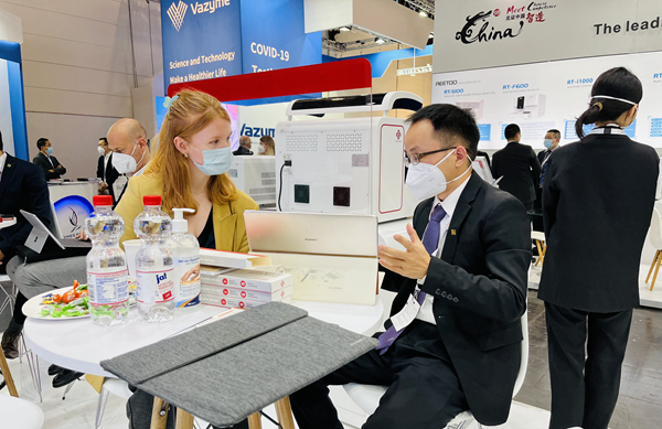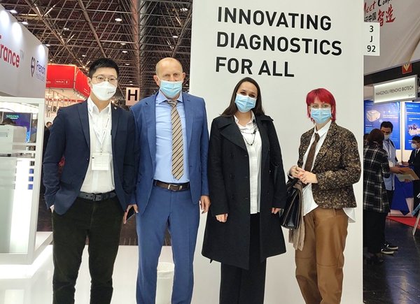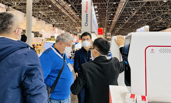 在银河优越会展台,“全自动解决方案”“半自动解决方案”“新冠整体解决方案”,以最大程度满足不同国家和地区客户、不同应用场景检测需求的特点,获得了众多来访国际客户的好评。尤其是iPonatic四通道产品,以其便捷、易操作、检测时间快、检测项目多等优势吸引了会场一大波新老“粉丝”的目光。